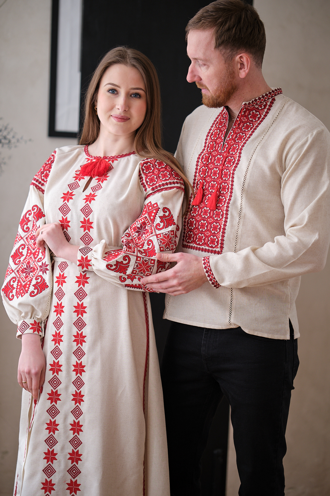 Вишитий комплект для пари "Оберіг" з натурального льону