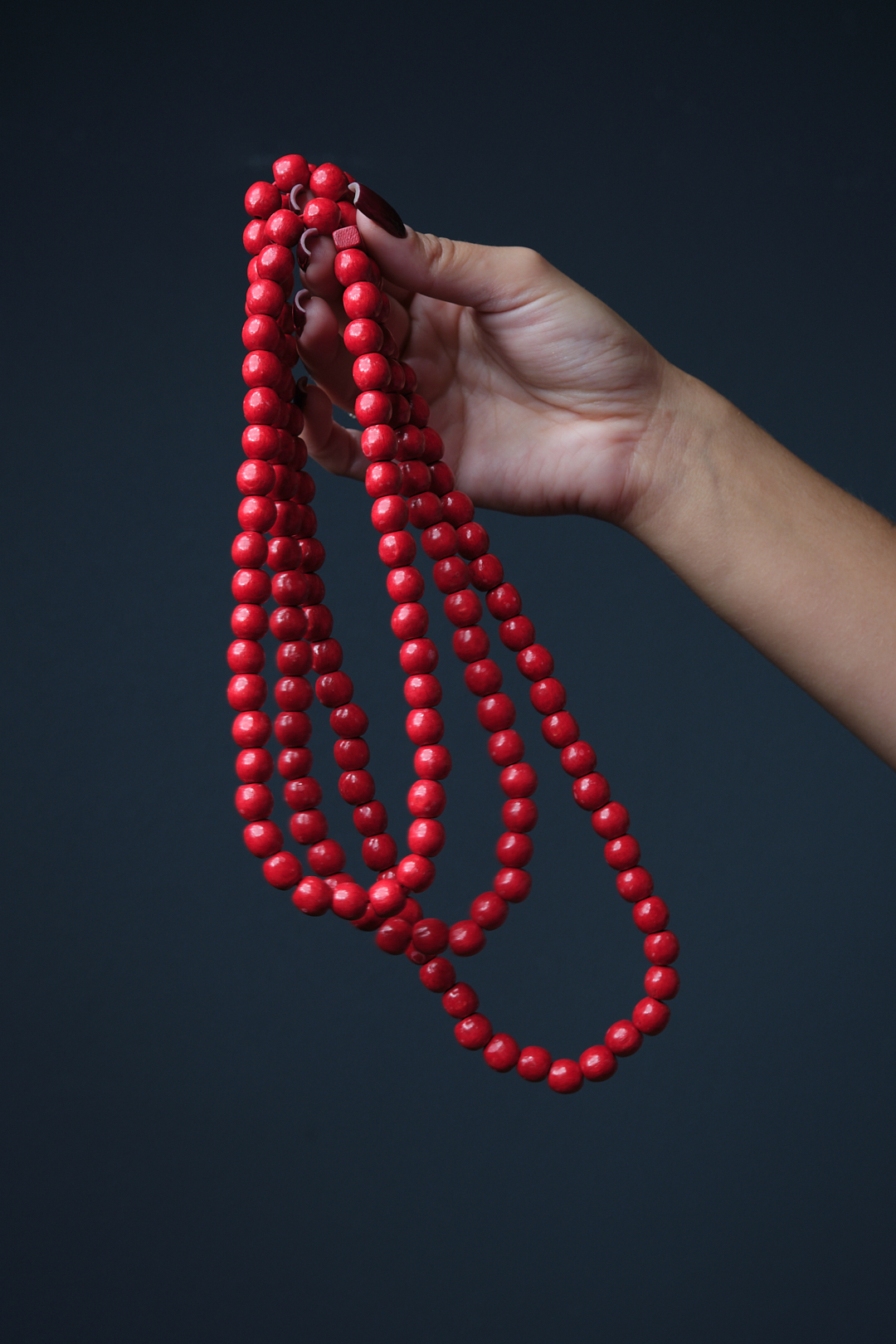 Намисто червоне( три ряди) дерево (ручна робота)