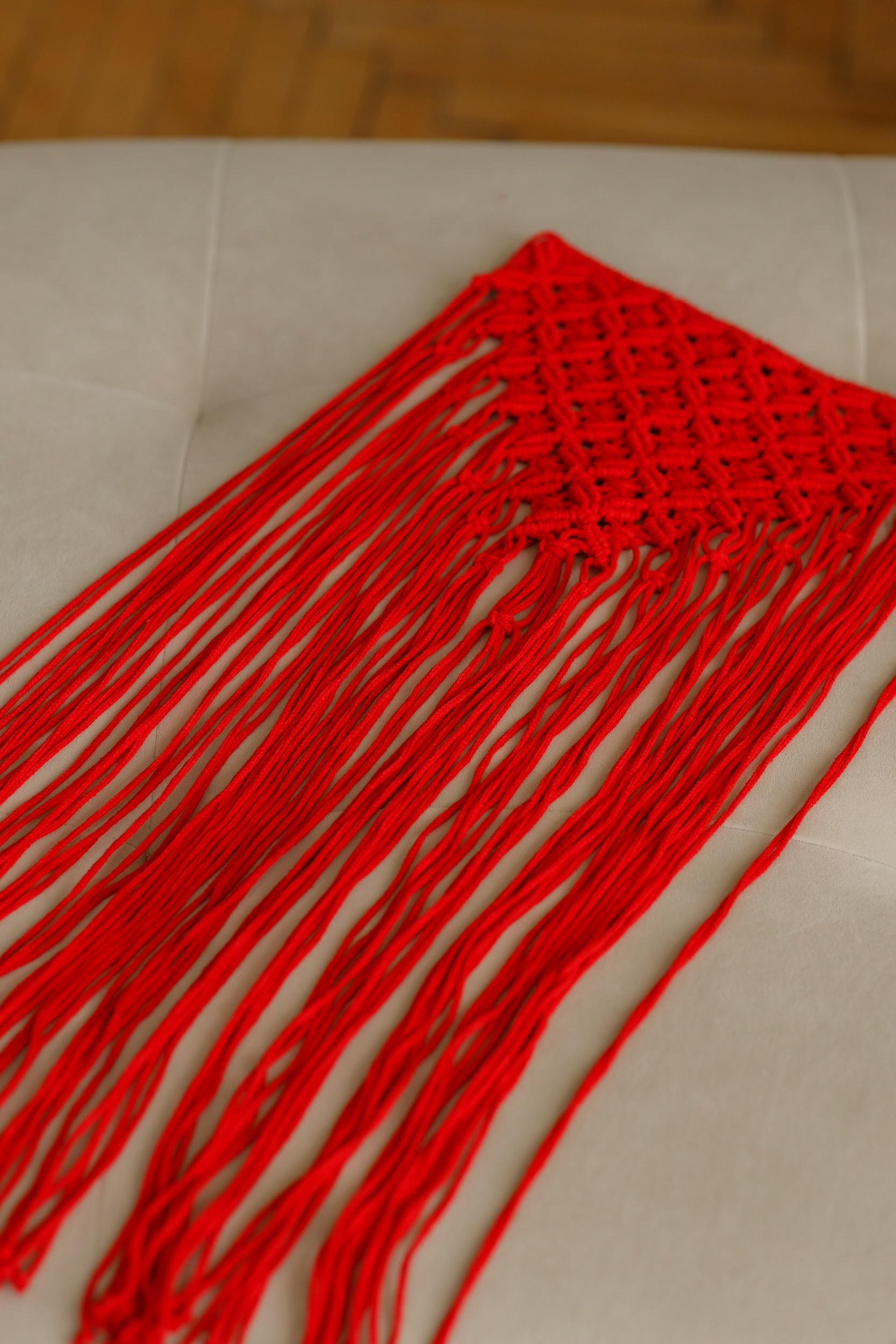 Хустина (пояс) у техніці макраме червоного кольору жіноча (ручна робота)