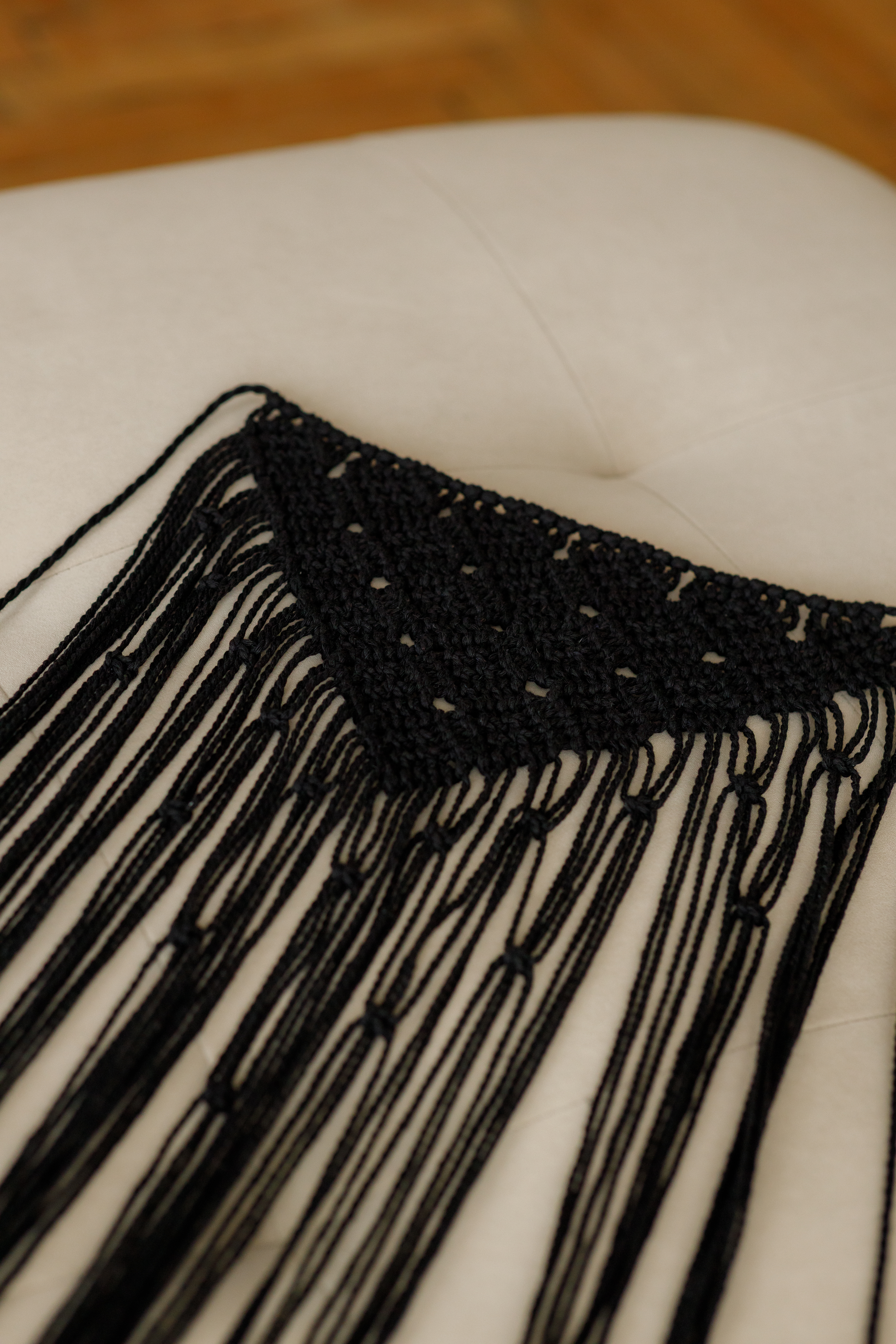 Хустина (пояс) у техніці макраме чорного кольору жіноча (ручна робота)