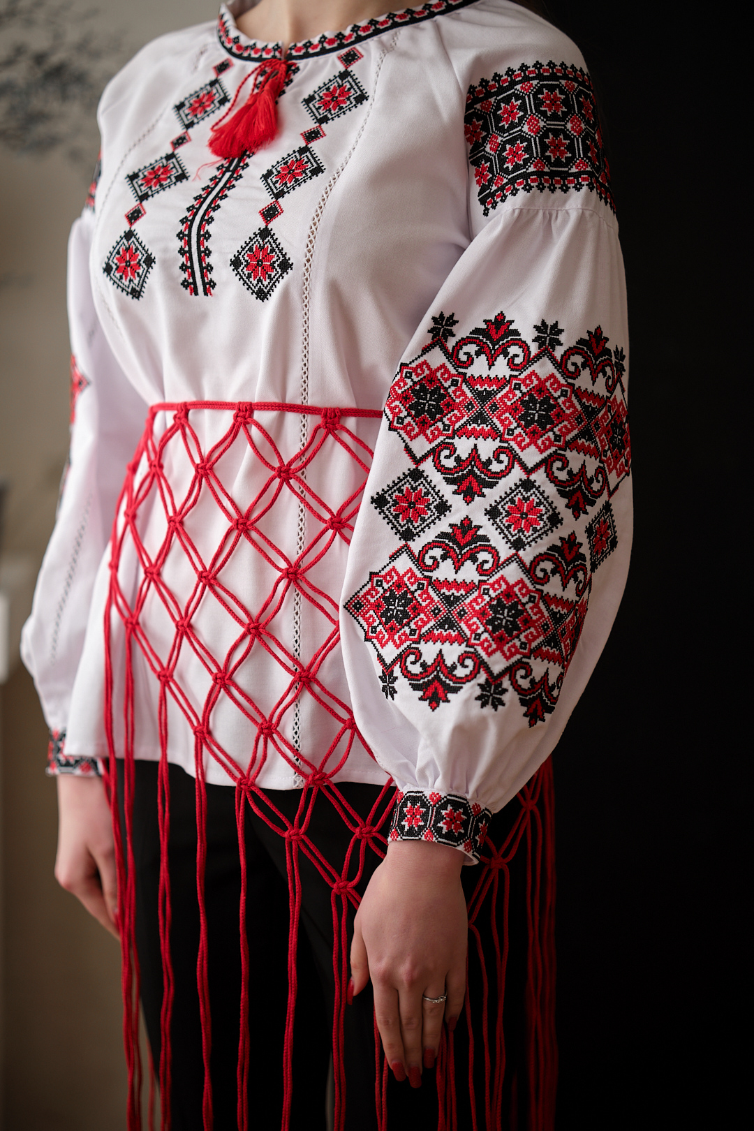 Жіночий пояс (хустина) макраме червоного кольору, ручної роботи