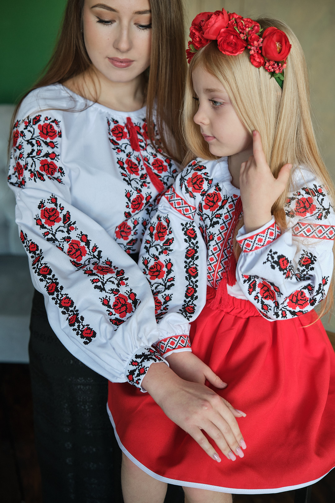 Сімейний комплект вишиванко для мами і донечки "Троянди" червоно-чорні від ТМ КАЛИНА