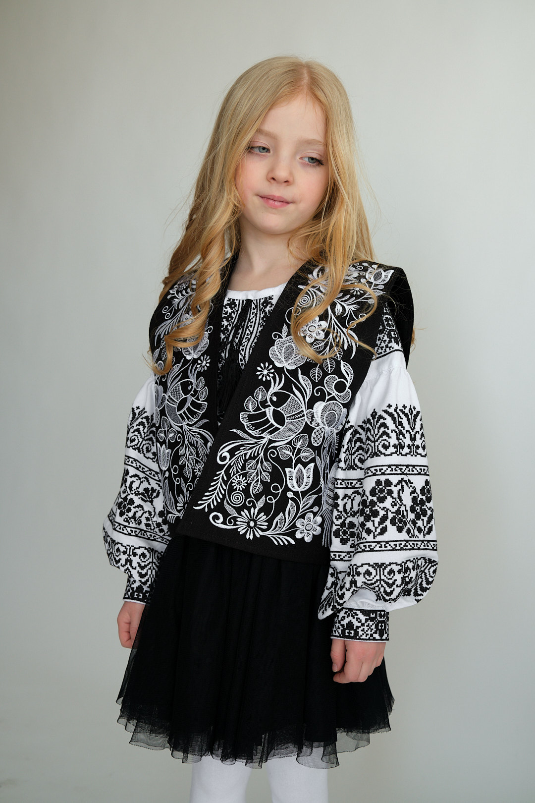 Жилетка вишита для дівчаток (льон) "Райська пташка" чорного кольору від ТМ КАЛИНА