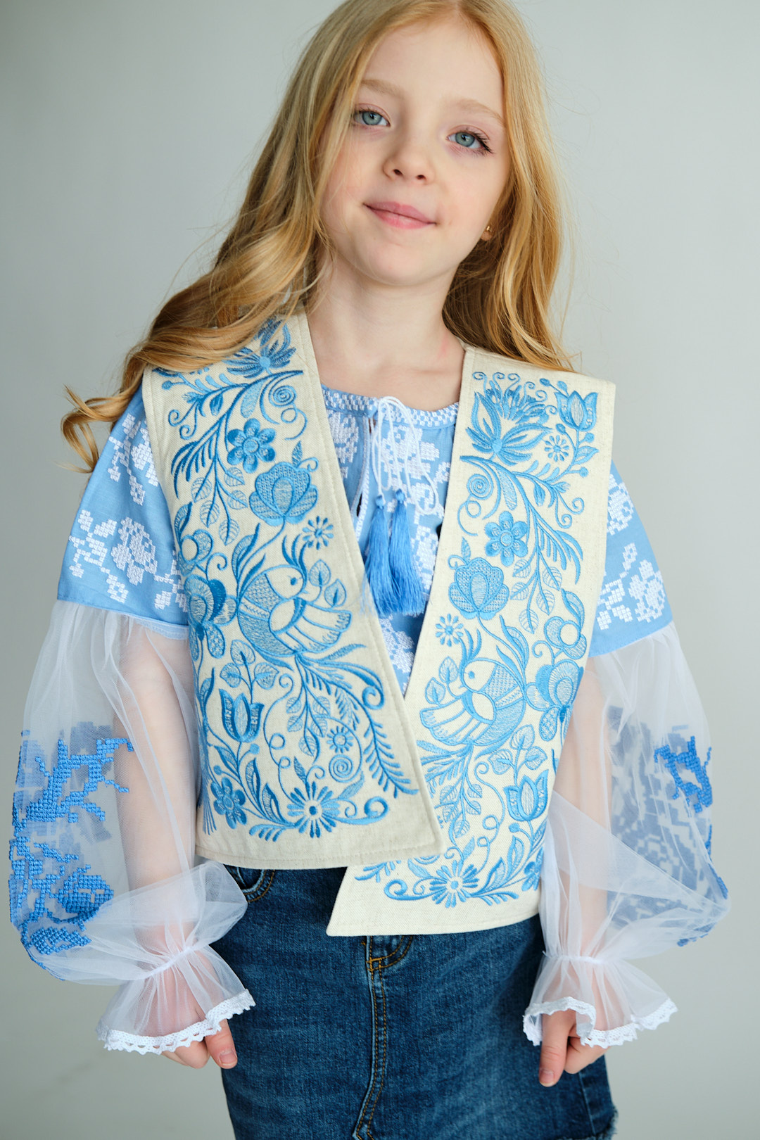 Оригінальна вишити жилетка для дівчаток (льон) "Райська пташка" від ТМ КАЛИНА