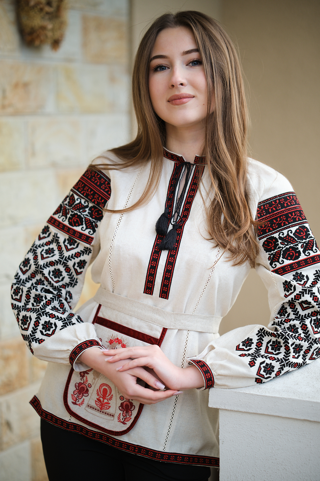 Вишиванка жіноча з льону "Ексклюзив" червоно-чорна від ТМ КАЛИНА