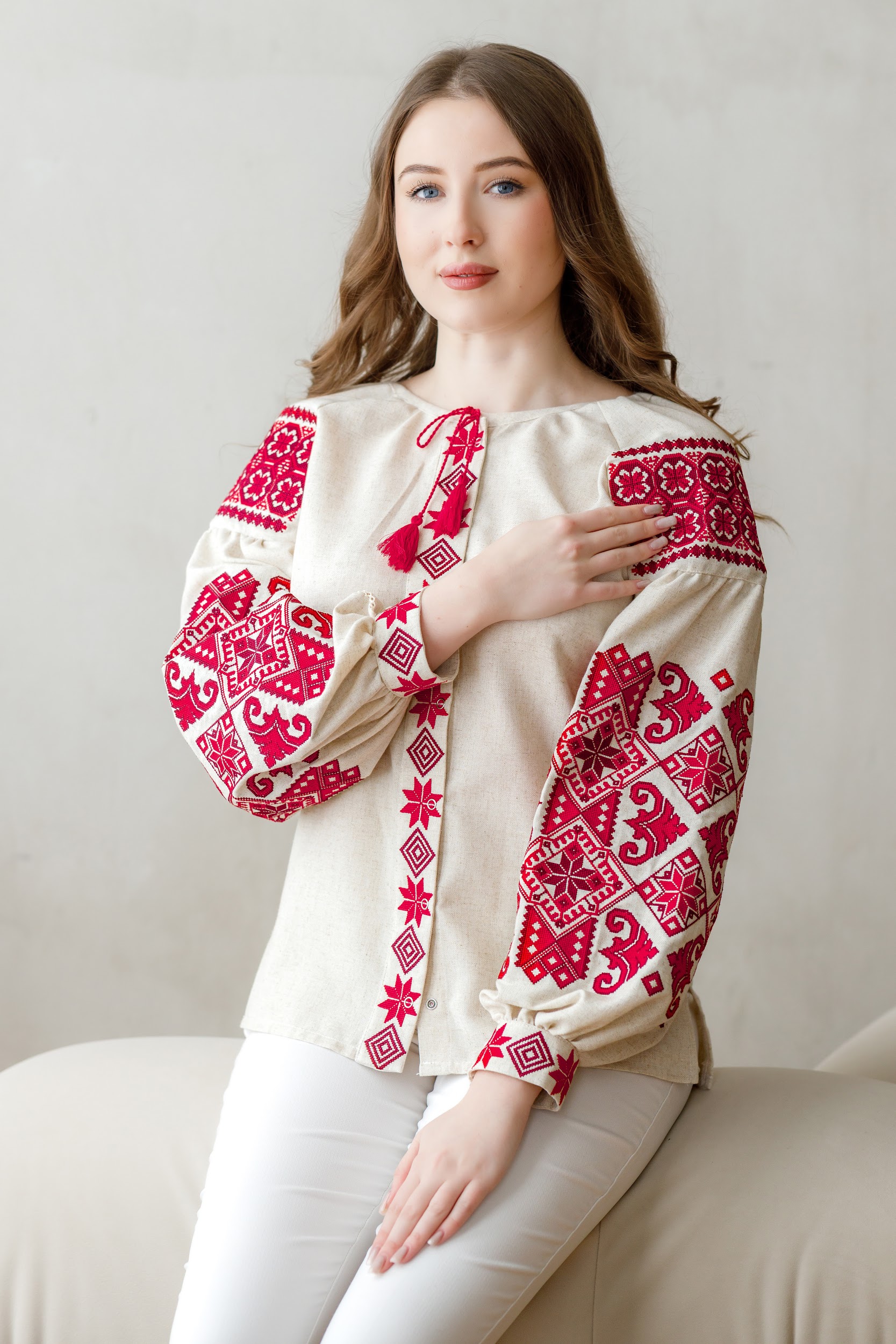 Жіноча лляна вишиванка "Оберіг" від ТМ КАЛИНА