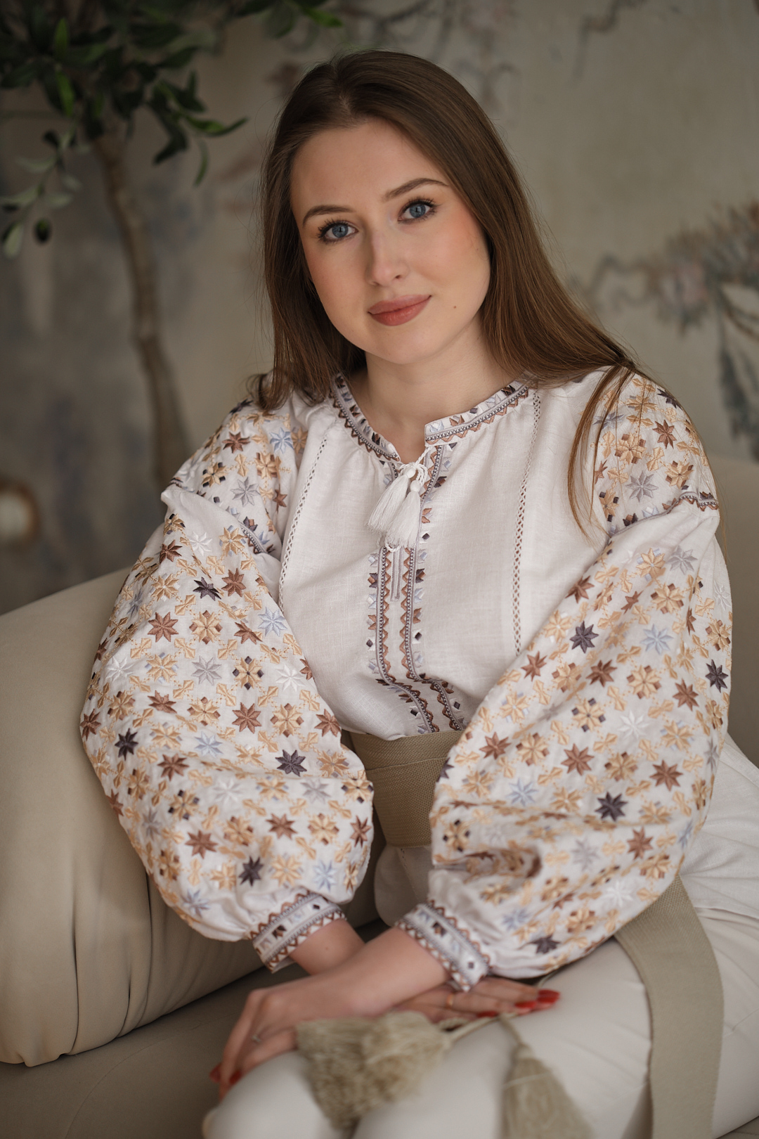 Об’ємні рукави додають вишиванці м’якості та жіночності, а пояс дозволяє красиво акцентувати талію.