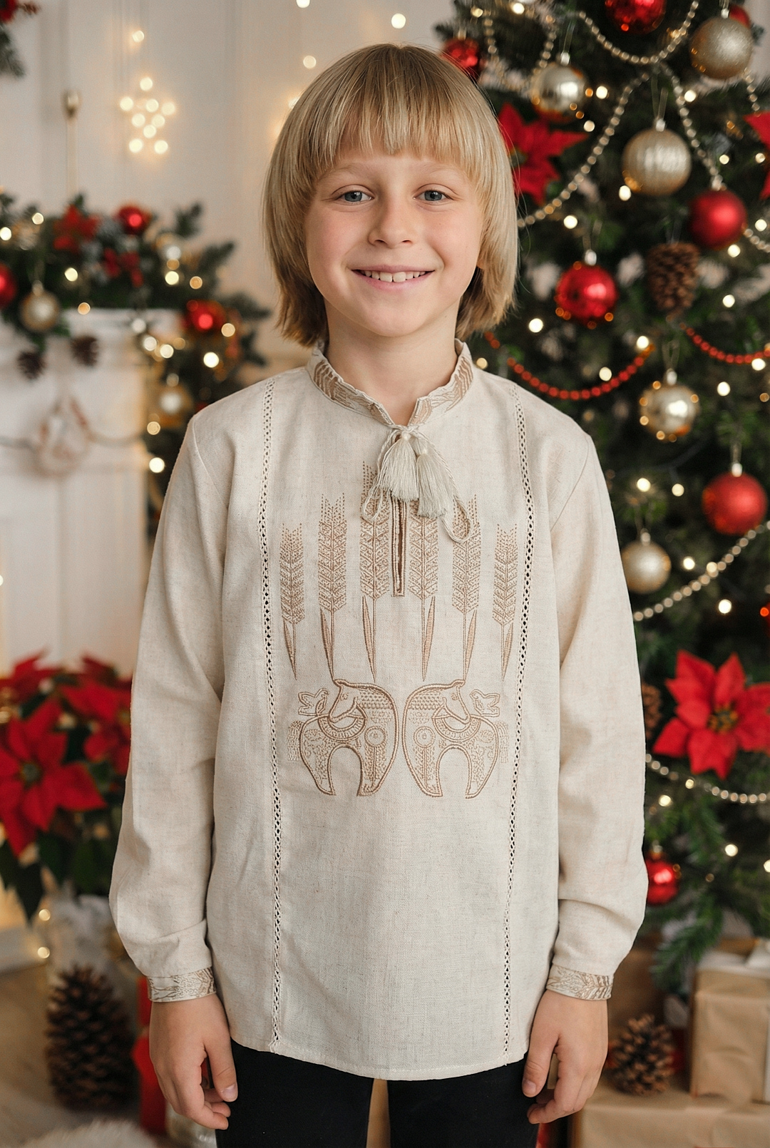 Лляна вишиванка для хлопчика "Коники" від ТМ КАЛИНА