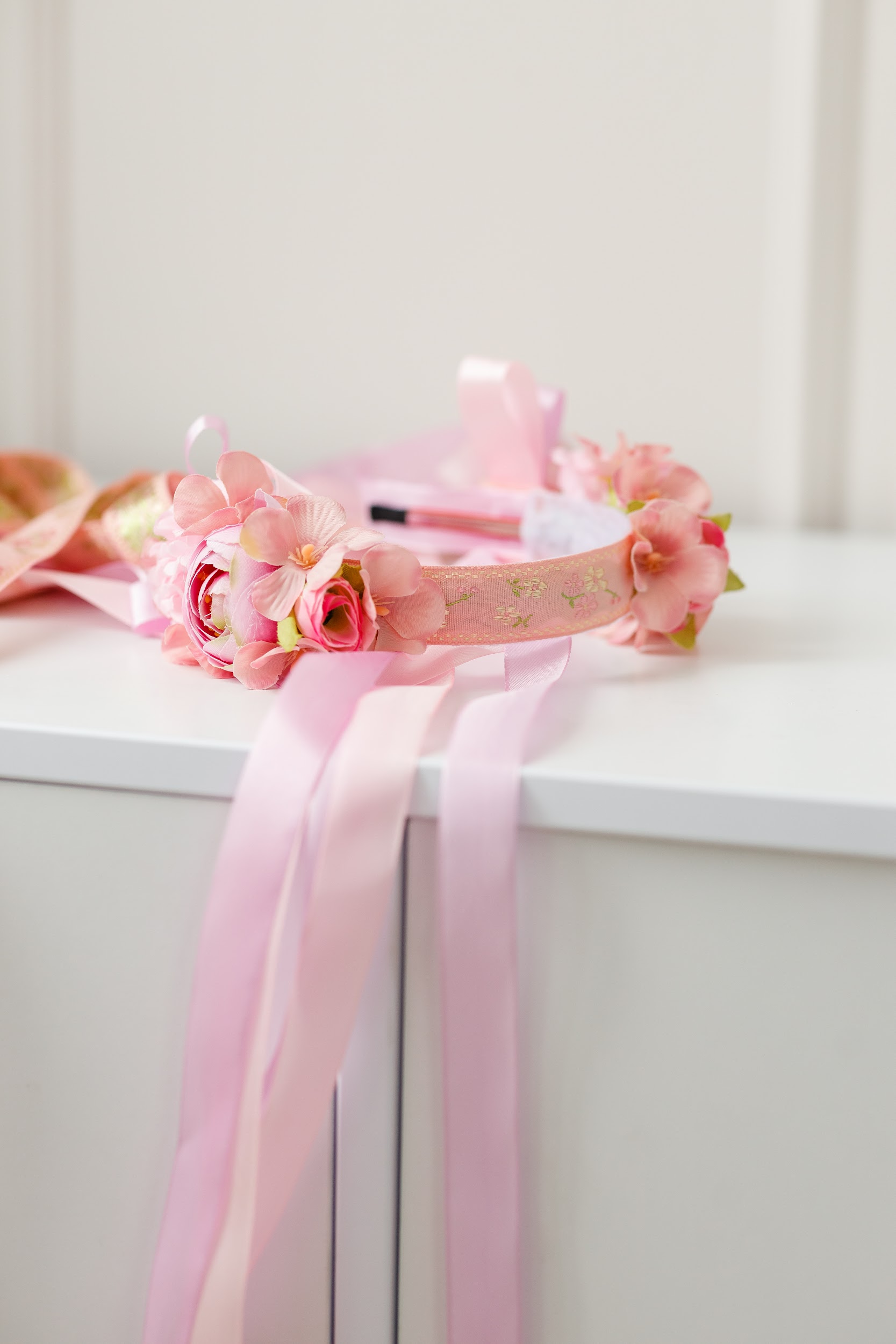 Ніжно рожевий віночок зі стрічками