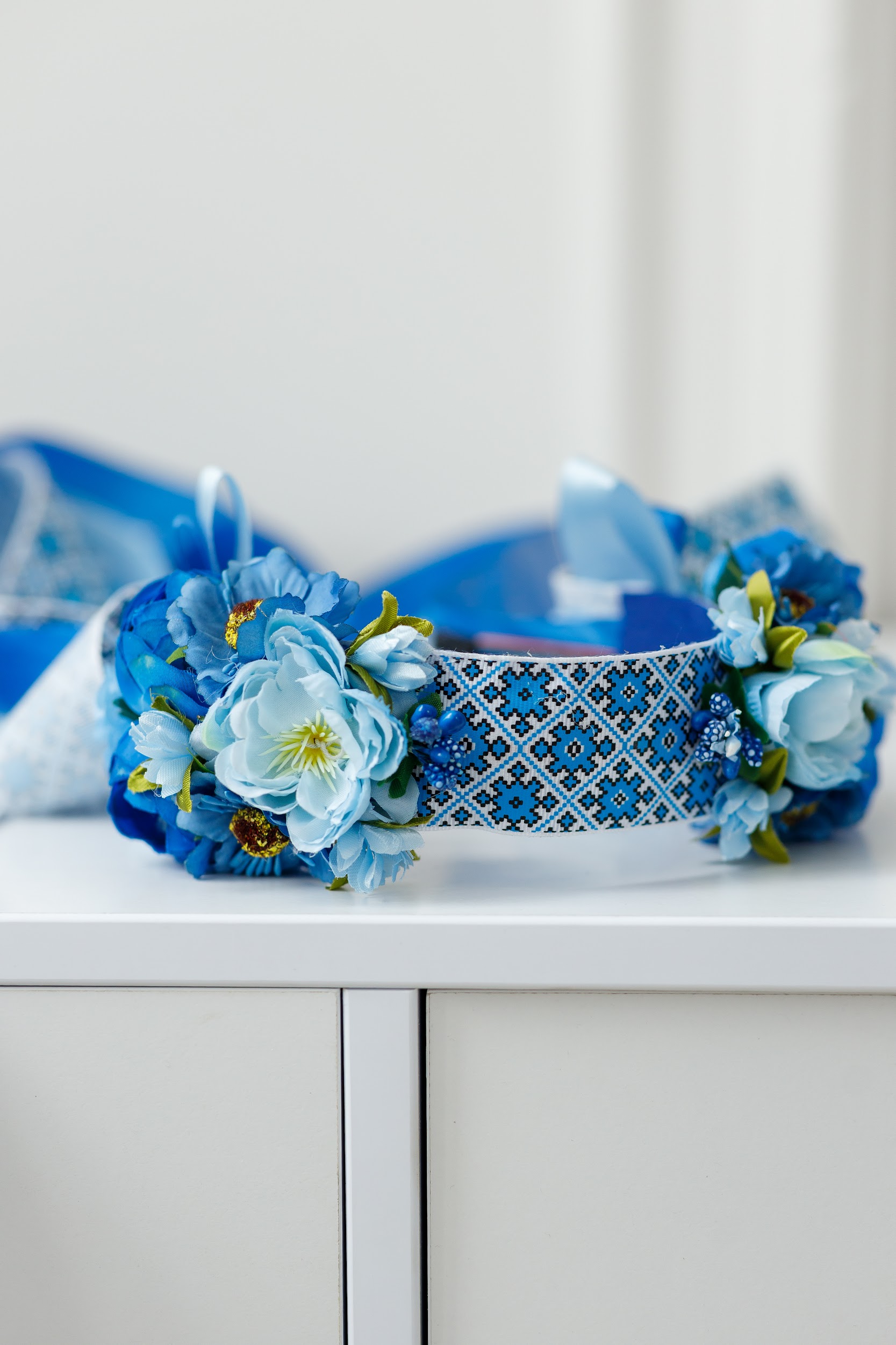 Темно блакитний віночок зі стрічками