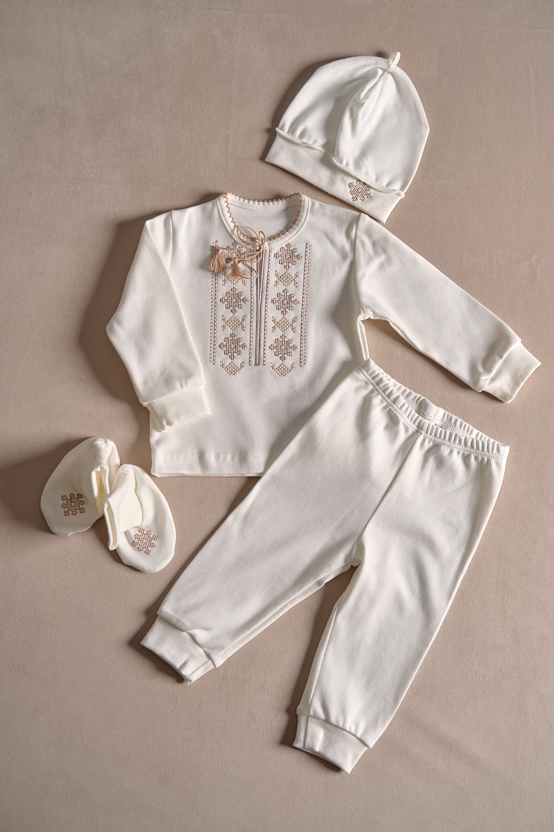 Теплий вишитий костюм для хрещення хлопчика "Світлий дотик " молочного кольору