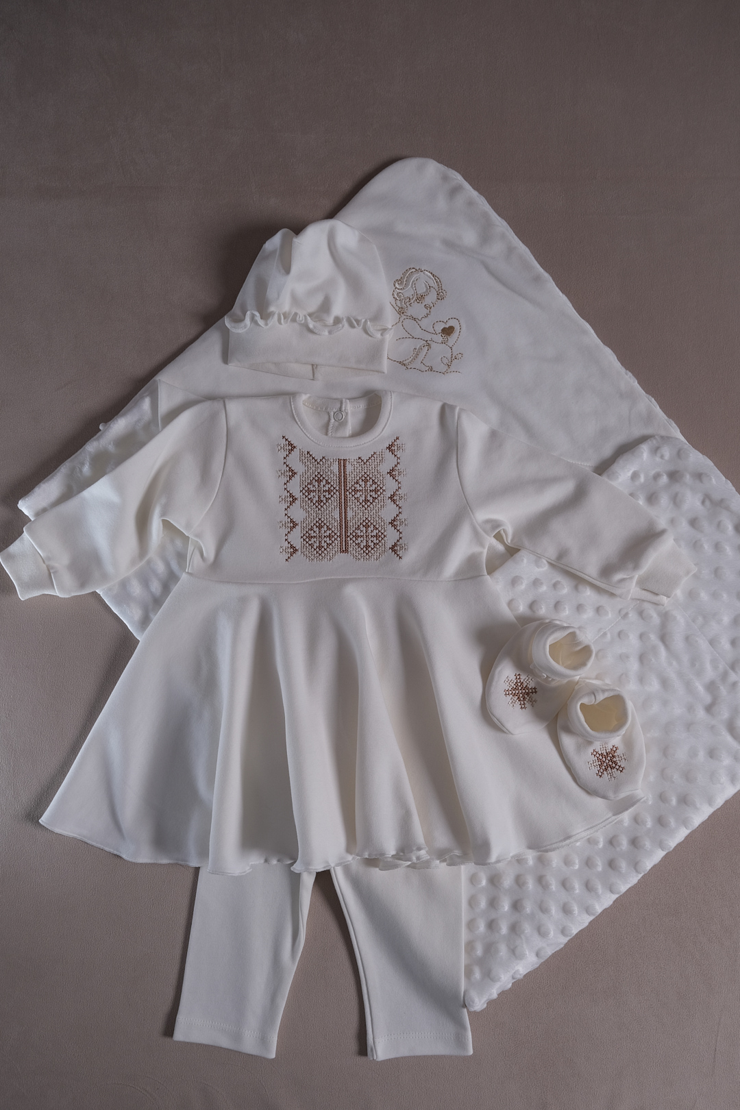 Вишитий костюм для хрещення "Ніжне мереживо" молочного кольору