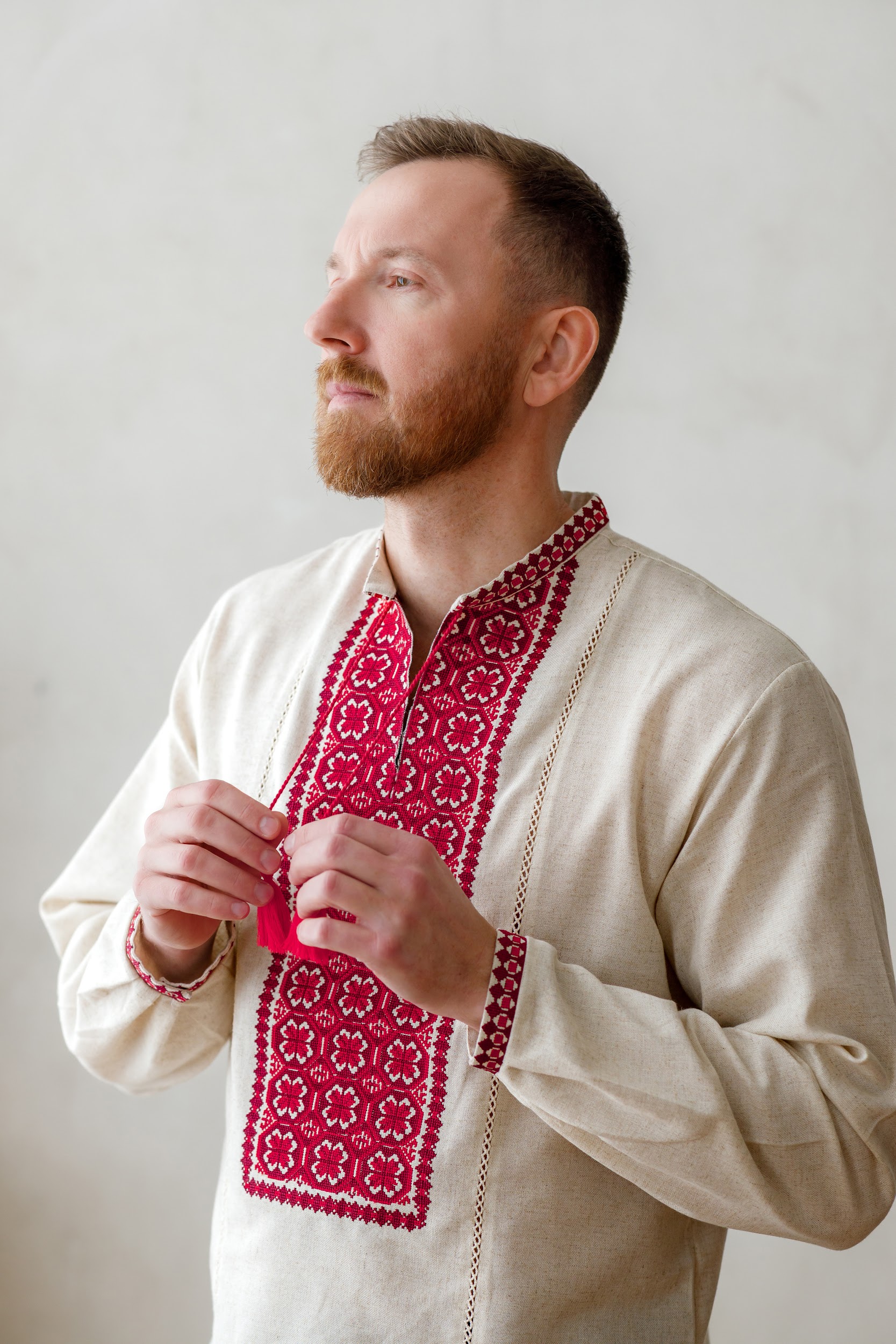 Чоловіча вишиванка з льону "Оберіг" від ТМ КАЛИНА